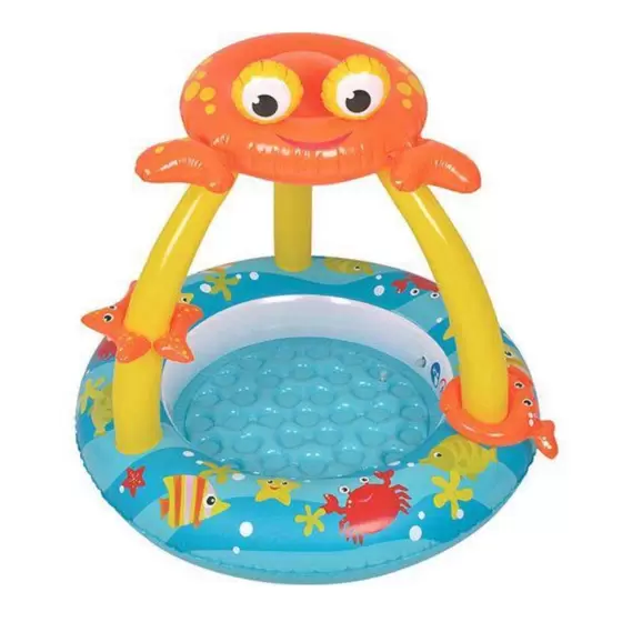 Com a chegada do verão, vem também o calor e nada mais refrescante que nadar em uma piscina segura e prática. Pensando nisso nossa piscina caranguejo é ideal para a criançada, ela acompanha cobertura, seu teto tem o formato e a figura de um caranguejo muito fofo que oferece uma área de sombra para que a criança se proteja dos raios solares, ela possui capacidade para 50 litros. Com ela, seus filhos poderão se divertir com comodidade e principalmente segurança que eles merecem. Com qualidade e bem estar dos pequeninos, vem em primeiro para aumentar a segurança, a piscina foi fabricada em material muito resistente e macio.